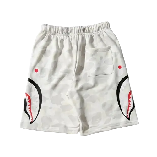 Our BAPE City Camo front Shark Sweat Shorts White is a worldwide famous item. These white shorts have unique designs and features which make them more famous. These shorts come with a camo pattern along with a shark logo print on the leg side front. There is also a pocket on the front that adds more comfort to the look. The camo print along with elastic wait allows the wearer to stay more comfortable.