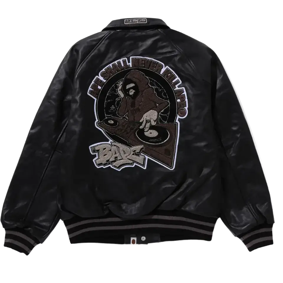 Bape Leather Varsity Jacket Mens